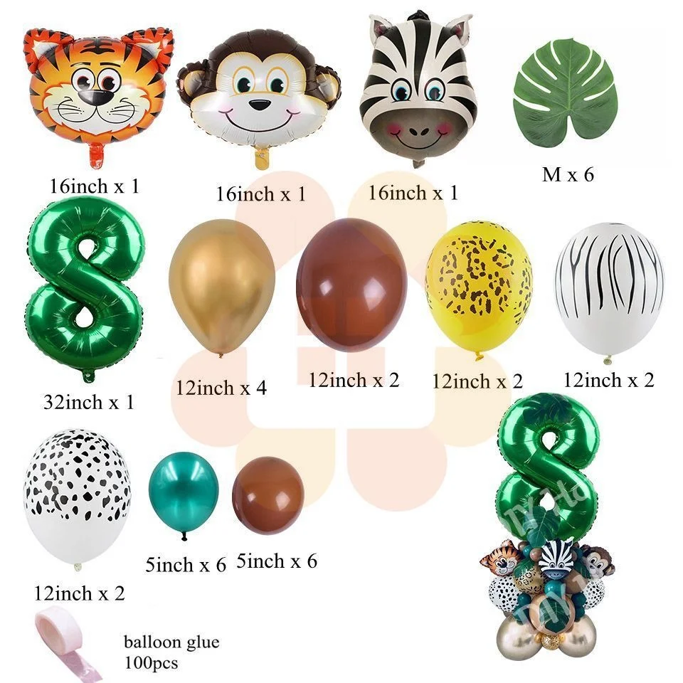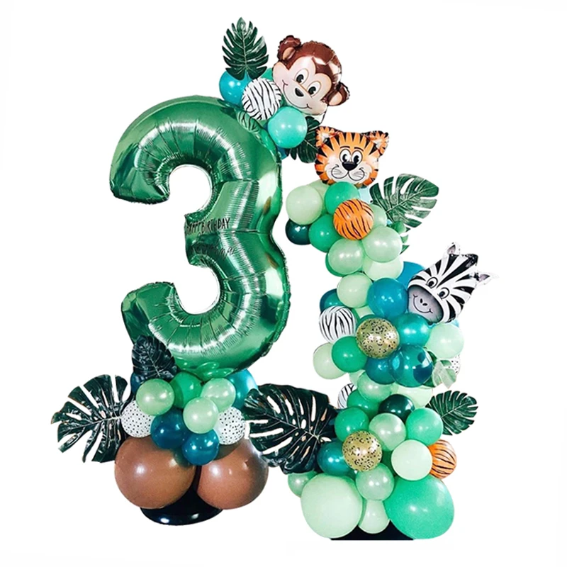 Новинка! Зеленые цифровые фольгированные воздушные шары 3240 дюйма, коробки с животными для вечевечерние в джунглях, детское украшение на день рождения, фотография, товары для дома