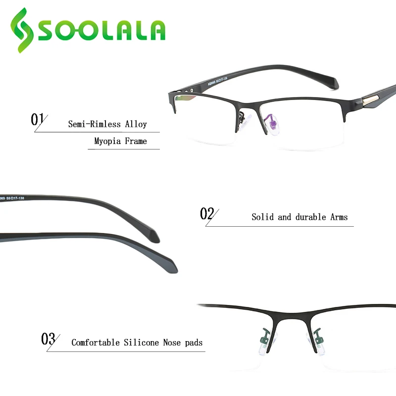 Мужские полуоправы SOOLALA, Рецептурные очки для близоруких компьютеров, оптические оправы, очки-0,5-1,0-1,5-2,0-4,5-5,0-5,5-6,0
