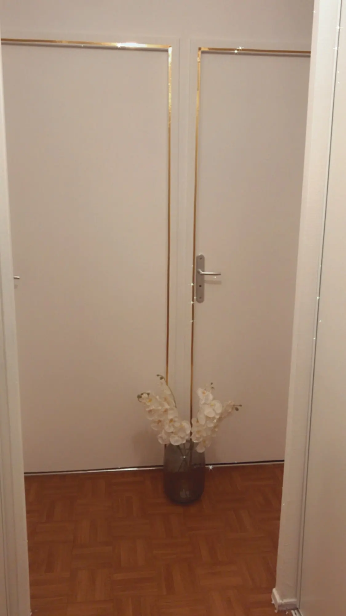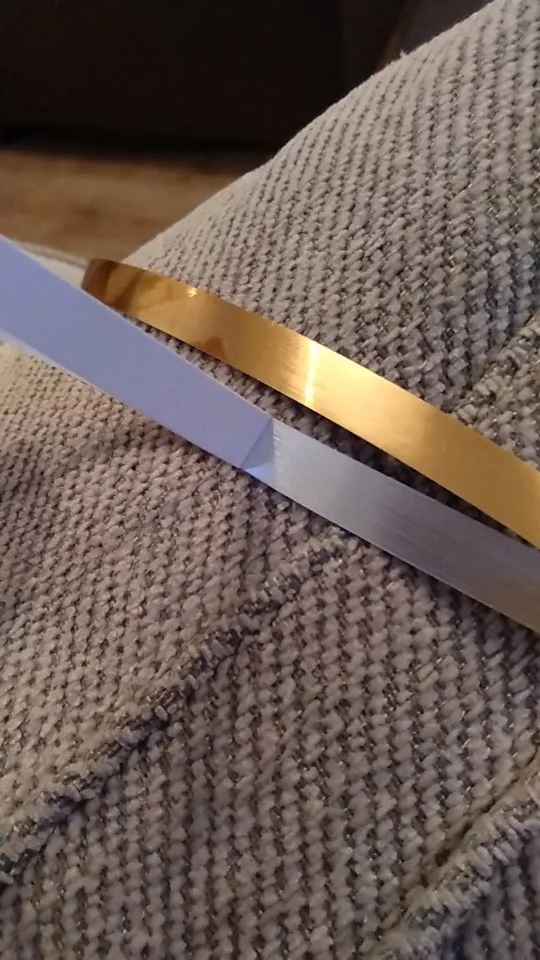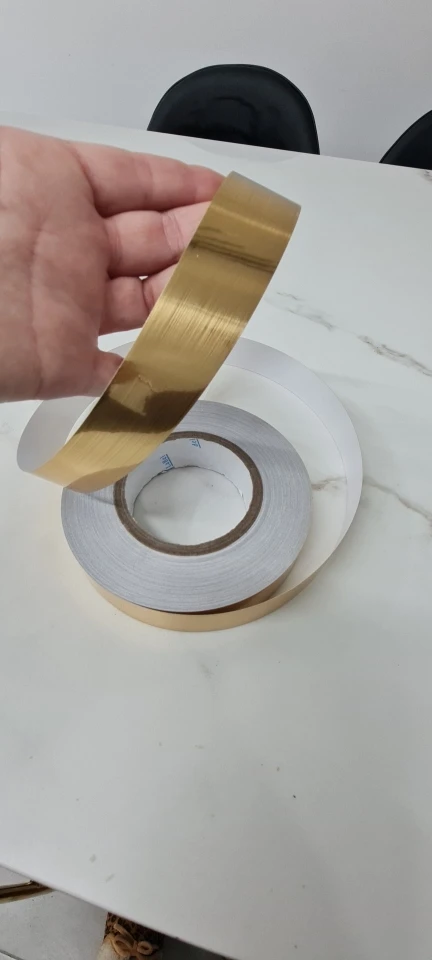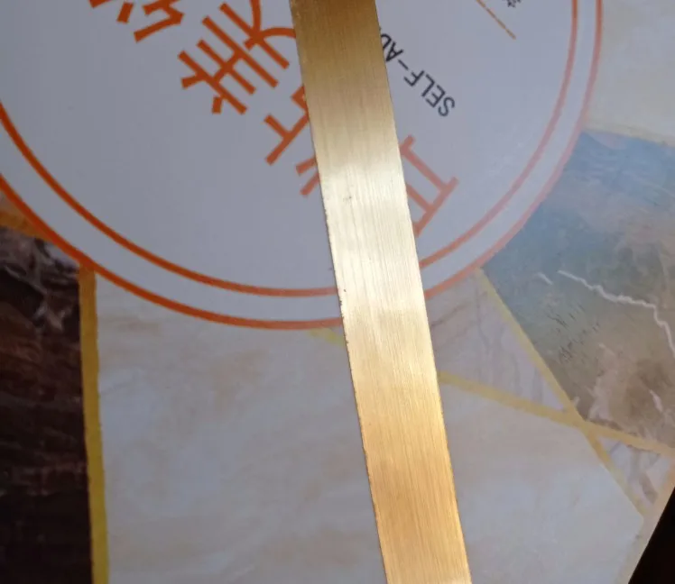 Металлизированная лента очень точно имитирует латунный пруток. Цвет не однотонный, а будто с брашированием. Выглядит дорого, дороже чем стоит. Советую!