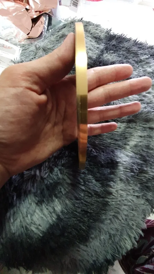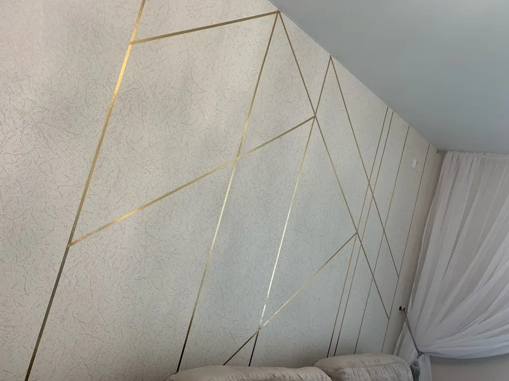 Супер лента. Похожа на железную по качеству. Золото блестит. Но немного принимает текстуру обоев. Лучше клеить на гладкую поверхность. Хорошо клеится и легко отклеить не повредя обои или стену. Прям приятно удивлены за такую цену. Ее очень много. Осталось еще пол рулона. Советую!!!
