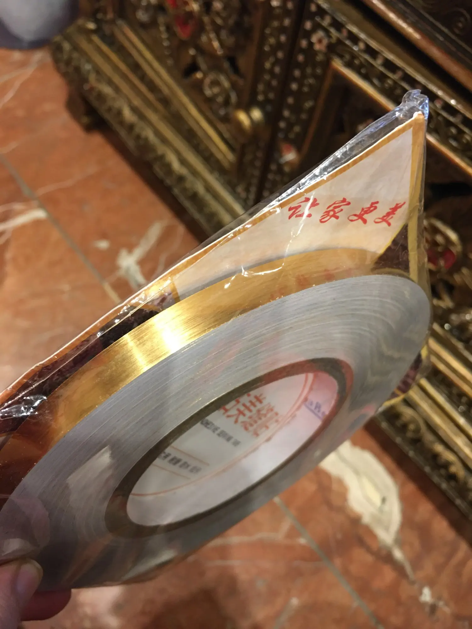 Настоящая металлическая фольга, чистка выглядит убедительно. Золотой тон также правильный, не такой ярко-желтый, популярный в Азии.