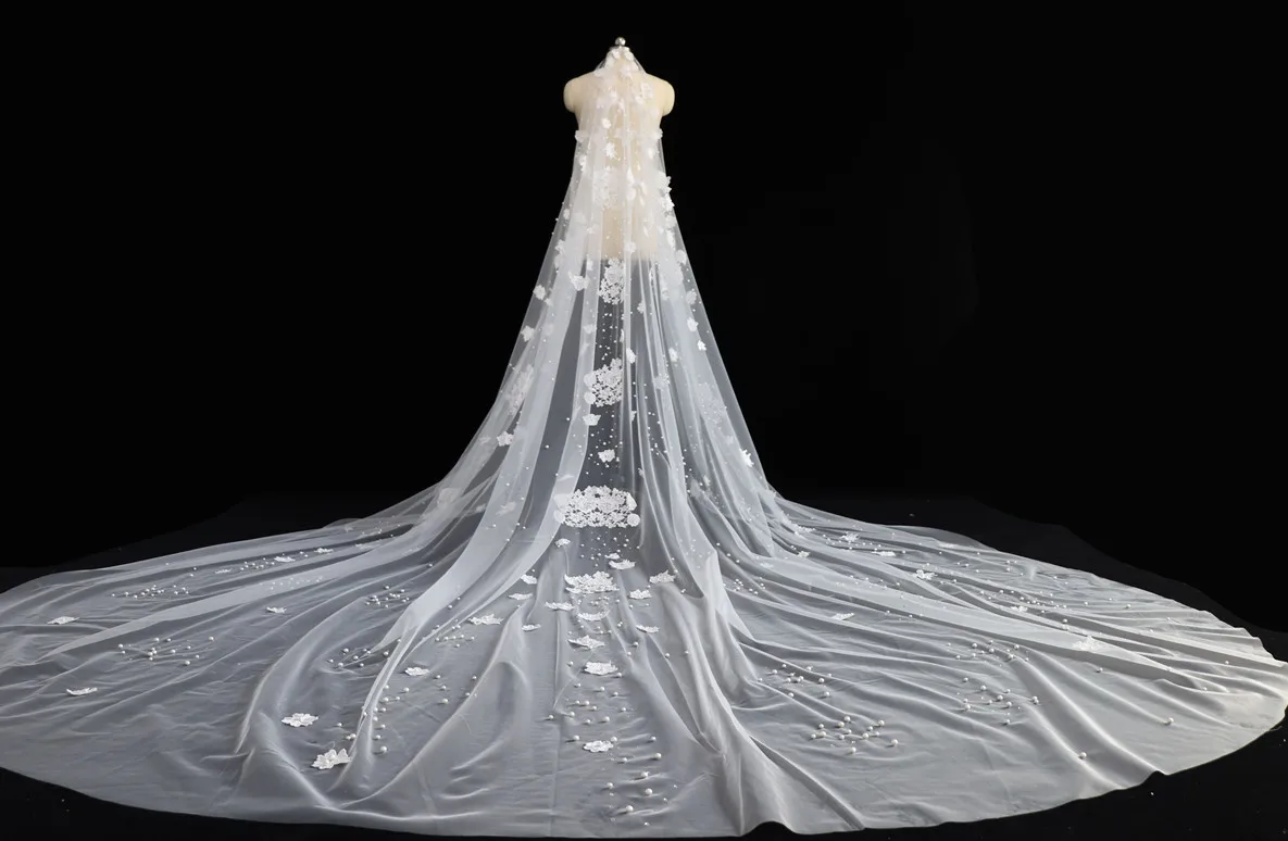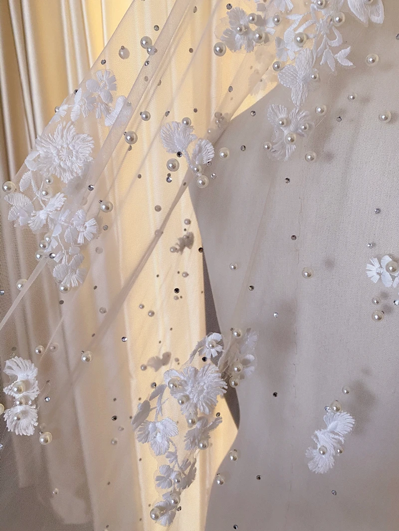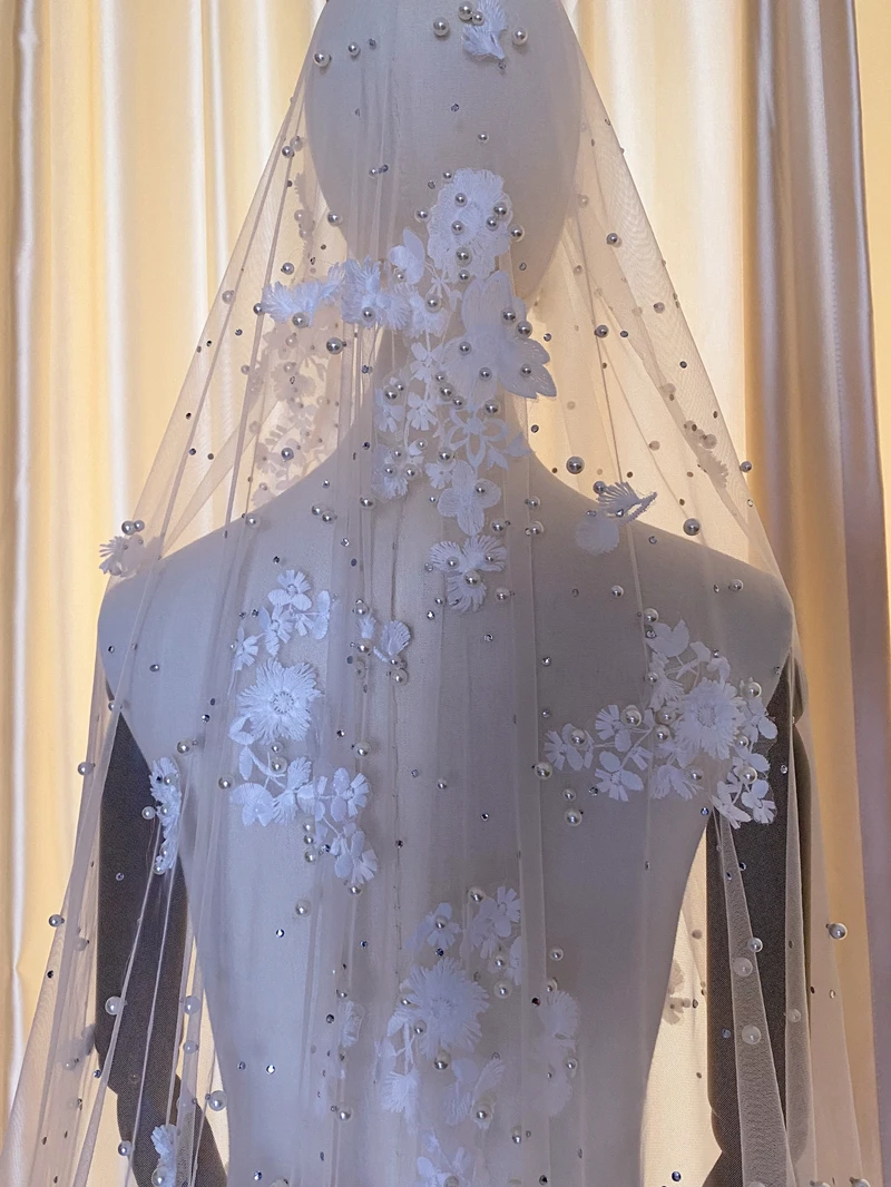 Аппликации свадебная фата 3D цветов свадебные туфли с жемчугом свадебная фата с длинным Длина элегантный бисером невеста вуаль свадебные аксессуары