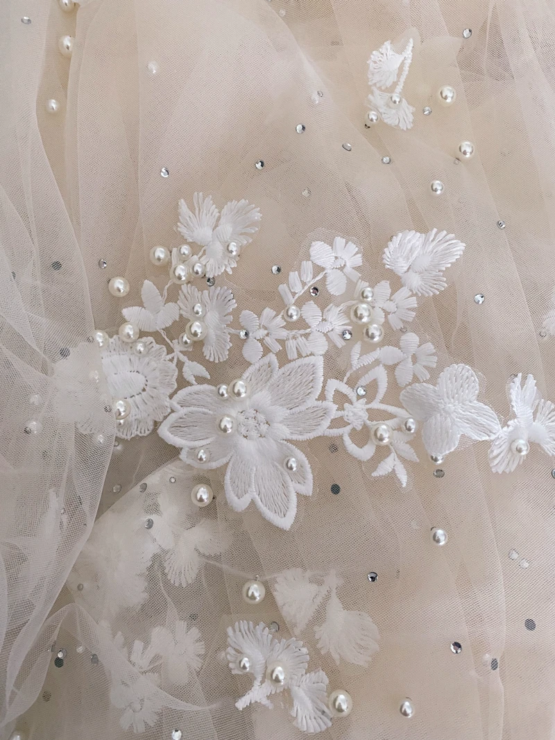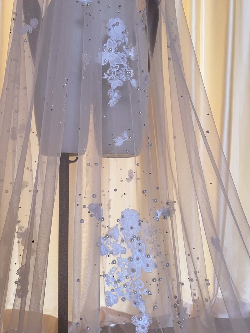 Размер: 300 см Ширина * 400 см длинаСделано из мягкого тюля + аппликации + жемчуг + бисер