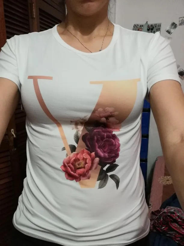 Футболка с цветами внутри Очень хорошее качество сидит хорошо.