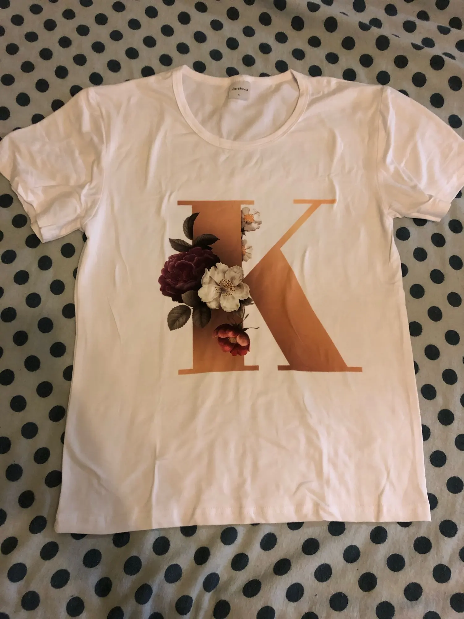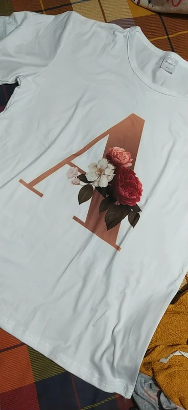 Заказ пришёл в срок. Заказывала четыре футболки с разными буквами и разных размеров, продавец все отправил точно в соответствии с моими пожеланиями. На Сообщения отвечал. Рисунок на футболках это не наклейка, он пропечатан на ткани, а значит не облезет после стирки.