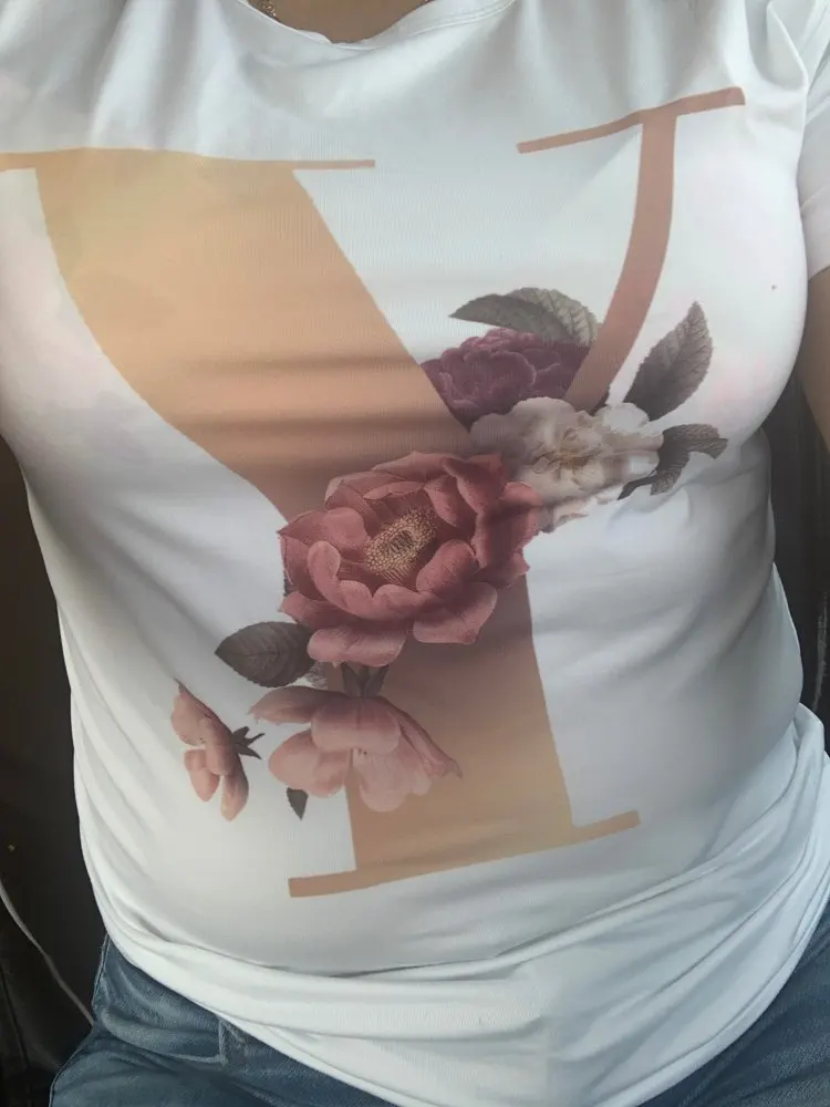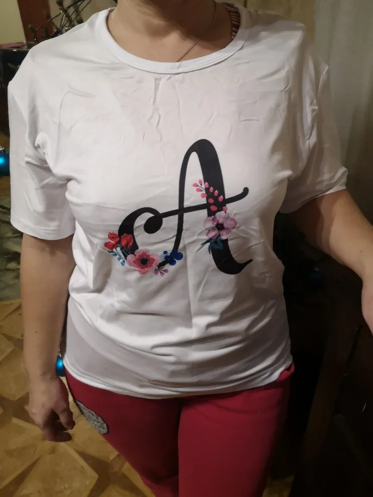 Женская футболка с коротким рукавом, с принтом букв и цветов