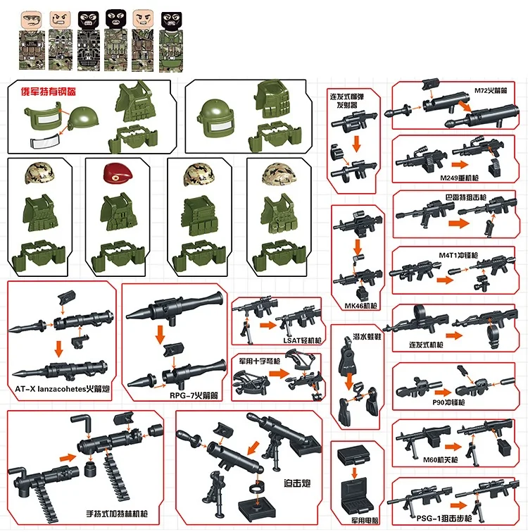 Русский альфа-сила, Современные строительные блоки MOC SWAT City, военное оружие, аксессуары playmobil, мини-игрушки