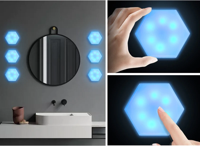 Квантовая лампа с сенсорным датчиком, с регулируемой яркостью, шестигранная, светодиодная подсветка под шкаф, ночные светильники для кухни, спальни, Настенные светильники с пультом дистанционного управления