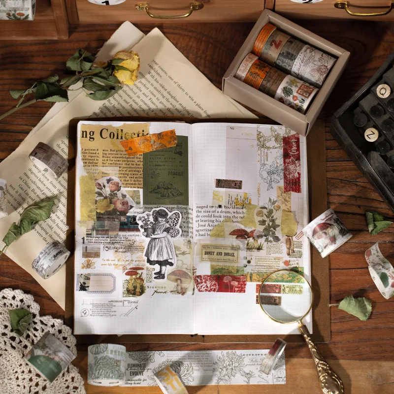 8 шт.упак. Винтаж Васи Бумага набор маскировочной клейкой ленты с цветочным узором, о-наклейка с изображением растений метки для скрапбукинга Подарочный дневник планировщик журнал