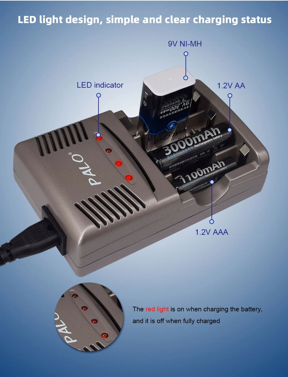 1. Режим: светодиодный смарт-дисплей, быстрое зарядное устройство2. Вход: AC 100-240V 50/60Hz3. Выход: 1,2 V DC 200mA AA-200mAx4 AAA-100mAx4 9V-30mAx24. Использование для: литиевой батареи 9 в5. Размер: 120 мм * 74 мм * 37 мм6. Материал: АБС + Поликарбонат огнестойкий материал7. Вилка: ЕС, США, Австралия, Великобритания8. Может заряжать: 1-4 шт. AA AAA NiMH NiCD или 1-2 шт. 9 В аккумуляторная батарея9. Наконечник: Красный светильник при зарядке, светодиодный светильник выключится при полной зарядке10. По умолчанию мы отправляем штепсельную вилку европейского стандарта, если вам нужна другая штепсельная вилка, пожалуйста, отправьте нам сообщение, спасибо
