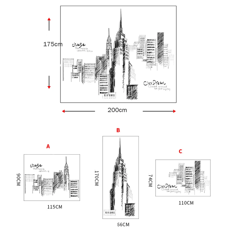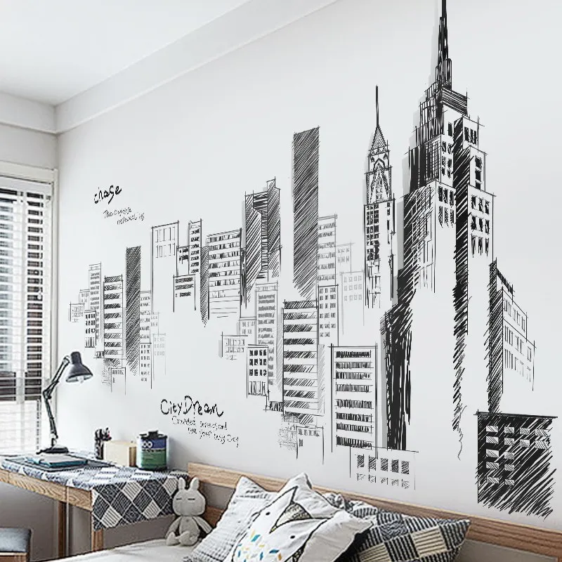 Винтажный Черный Большой Высокий городской набор для зданий, настенные наклейки из ПВХ, самодельная роспись, искусство для гостиной, дивана, декорация, декорация, наклейка, 3 размера