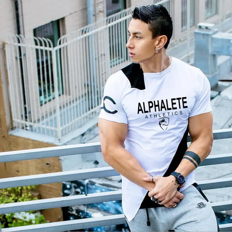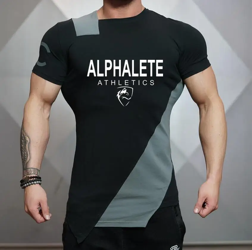 Мужская футболка с коротким рукавом ALPHALETE, летняя футболка для фитнеса, бодибилдинга, хлопковая Футболка для отдыха, 2019