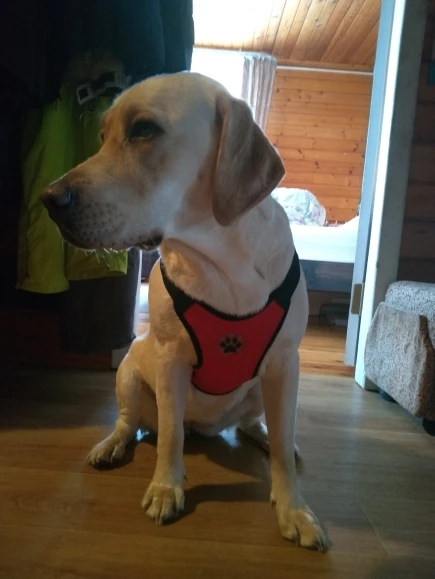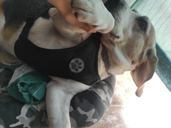 Размер слишком большой, я взял размер, следуя данным веса моей суки, и даже делая его маленьким, он слишком гигантский