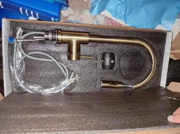Этот кран такой же блестящий, как и серебро. Это не очень легко удалить мой старый кран, потому что у моей раковины есть шкаф ниже. Поэтому я должен скручивать винты, сидящие на полу. Но легко установить этот новый кран, никаких удивлений. Вода течет хорошо, никаких химических запахов. Доставка хорошая 4 дня. Но упаковка немного большая, больше, чем я думал.