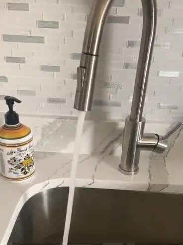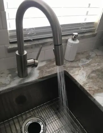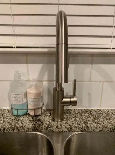 Отличная замена нашего изношенного крана. Это элегантная, атласная отделка и идеально подходит для нашей кухни... на самом деле это самая красивая вещь на кухне сейчас. Легко следуйте инструкциям для безболезненной установки, гладкий дизайн, вытягивание отлично работает и контроль гладкий. Я очень доволен этим.
