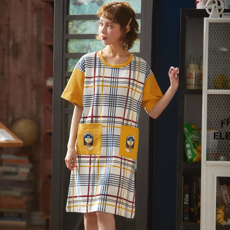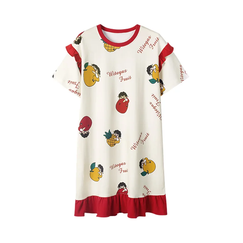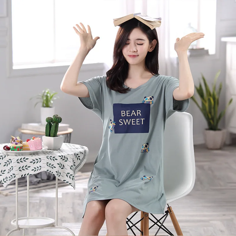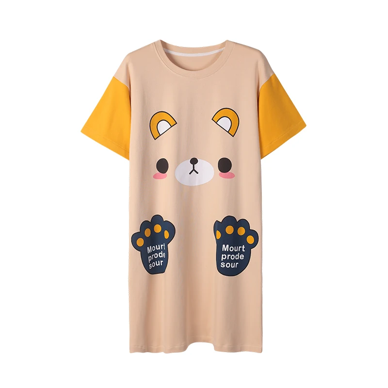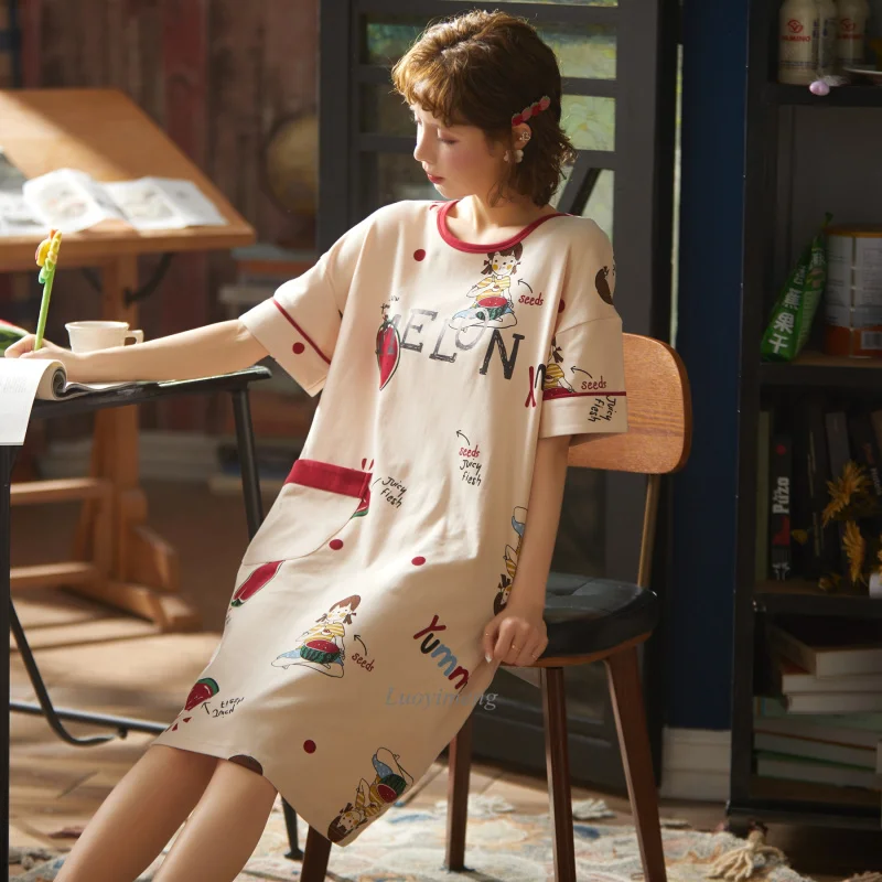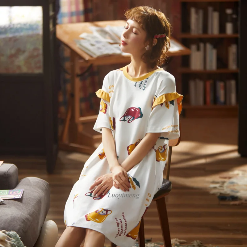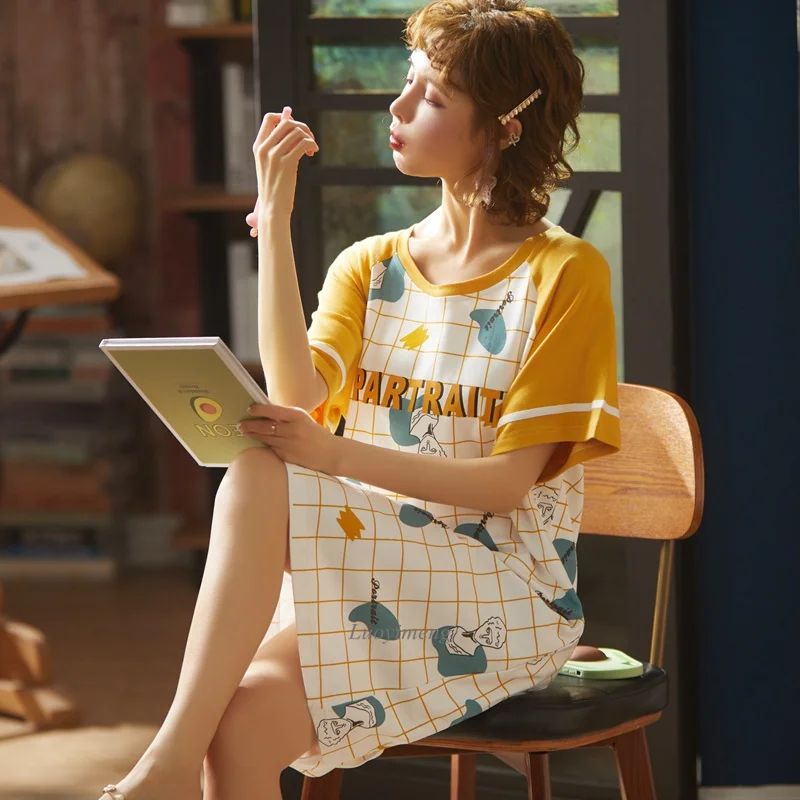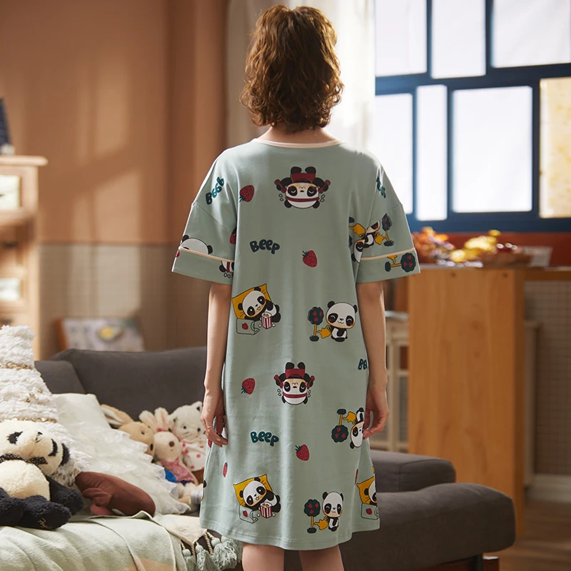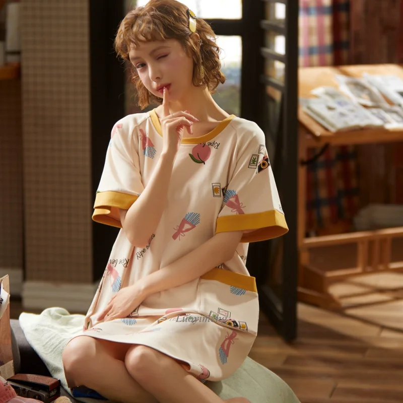 2022 женская пижама с коротким рукавом, хлопковые ночные рубашки, летние Ночные рубашки с мультяшным рисунком, домашняя одежда, платье для сна для девочек