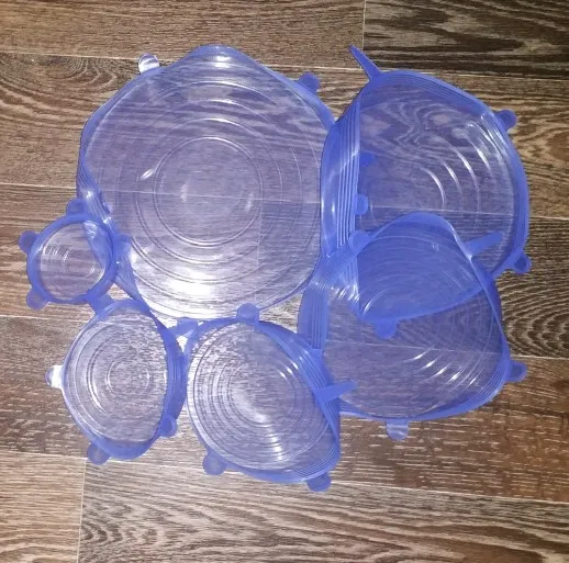 Чудесные силиконовые крышки. Соответствуют фото и описанию. В комплекте разные размеры. Диаметр от 6 до 18 см. Крышки удобны в использовании. Естественно, перед первым использованием их нужно промыть и высушить. Рекомендую.