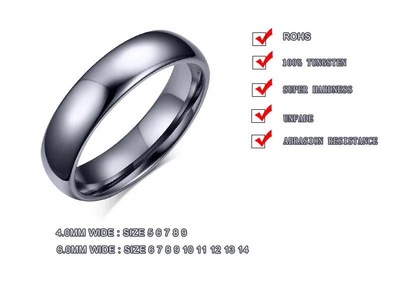 Кольца из карбида вольфрама для женщин и мужчин, ширина 6 мм