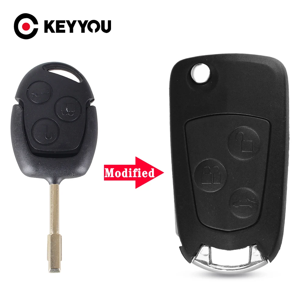 Чехол для ключей от автомобиля KEYYOU, с 3 кнопками, для Ford Mondeo Focus 2, 3, Fiesta, Fusion, C-Max, S-Max, чехол для ключей FO21HU101