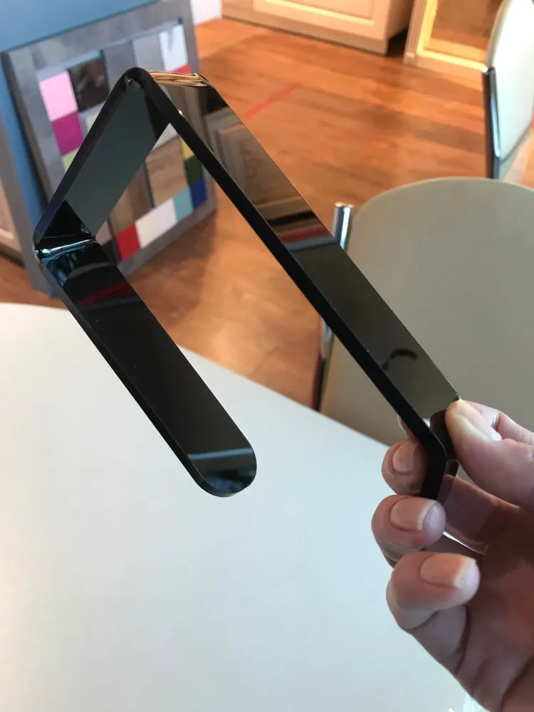 Товар пришел быстро, пластик, легкий, в комплекте двухсторонний скотч. Наклеивается легко и очень удобно. Рекомендую.