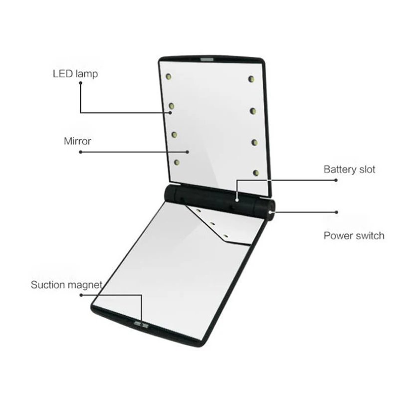 Складной портативный светильник для макияжа женский светодиодный зеркальный светильник компактный карманный светильник на батарейках подарок