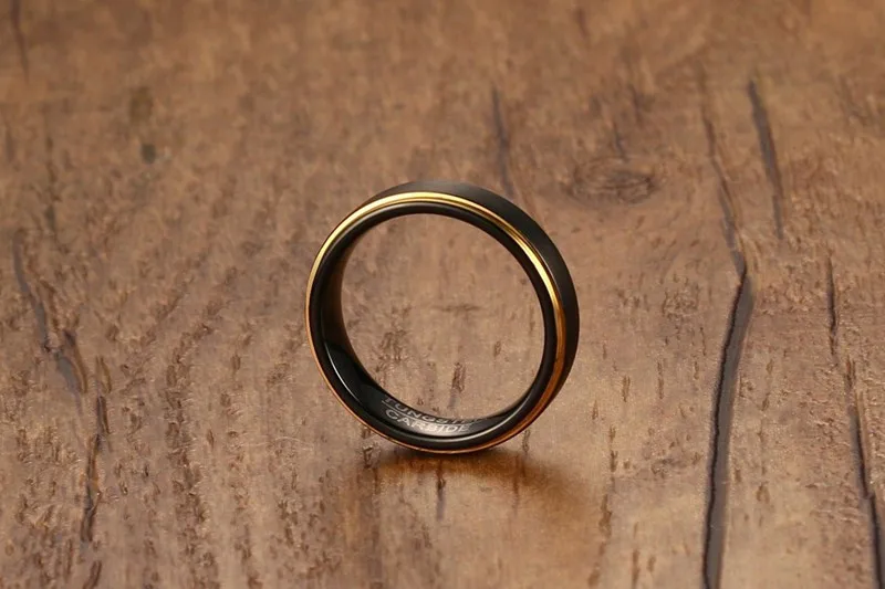 Новинка 2022, Крутое вольфрамовое кольцо KOtik черного и золотого цвета для мужчин, ювелирные изделия, кольцо из карбида вольфрама черного цвета 6 мм