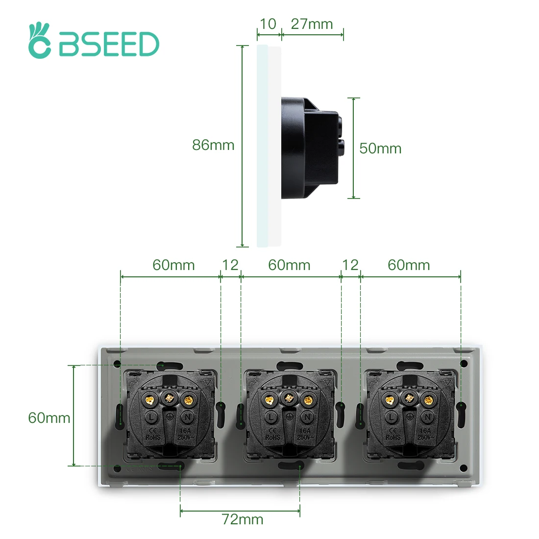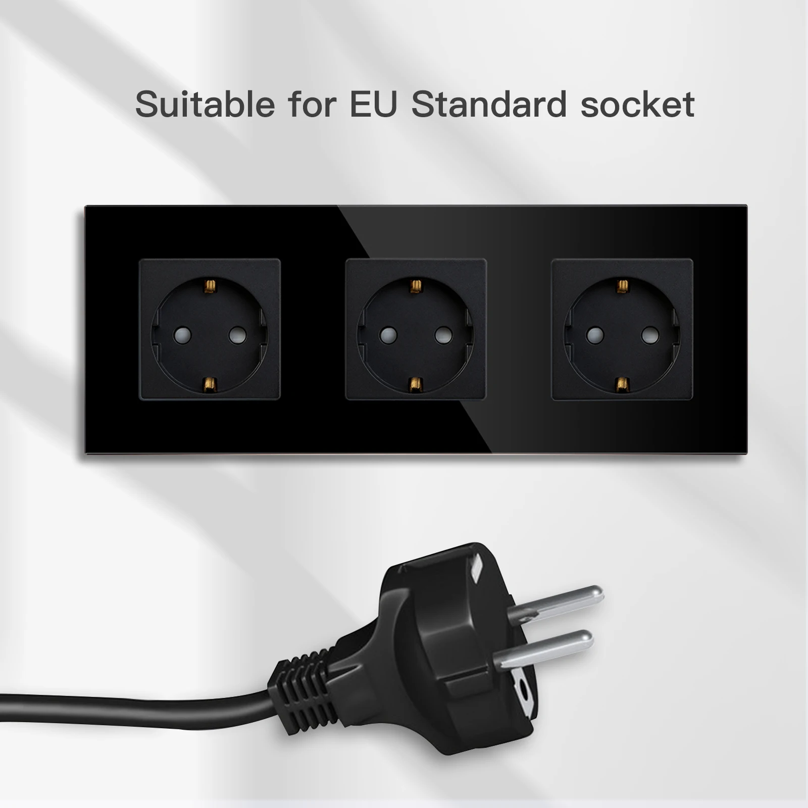 Тройная настенная розетка BSEED европейского стандарта, электрическая панель из закаленного стекла, белая, черная, золотая, 110-240 В
