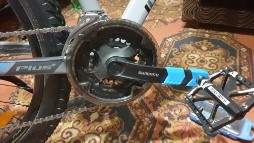 Защита в целом хорошая, на шимано 42 зуба по диаметру отлично подходит. По креплениям не совпало, пришлось сверлить в звезду рядом с родными 2 отверстия. Смотрится хорошо и сидит, при наличии сверла и рук, надёжно. В общем доволен, можно брать, но учитывайте что возможно придётся подогнать малость.
