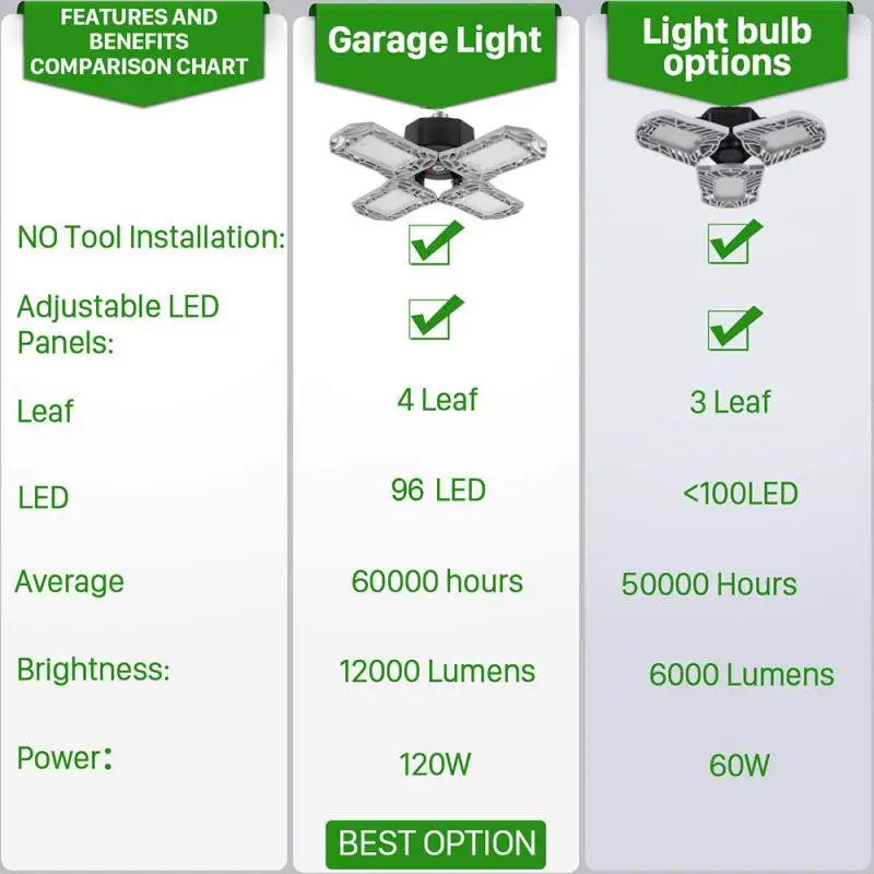 -Прочная и длительный срок службы светодиодная лампа для гаража мощностью 120 Вт-эта лампа для магазина мощностью 60 Вт изготовлена из безопасного корпуса из алюминиевого сплава премиум-класса, стабильная и долговечная при максимальной производительности, более 50000 часов постоянного времени работы резко сокращают затраты на техническое обслуживание