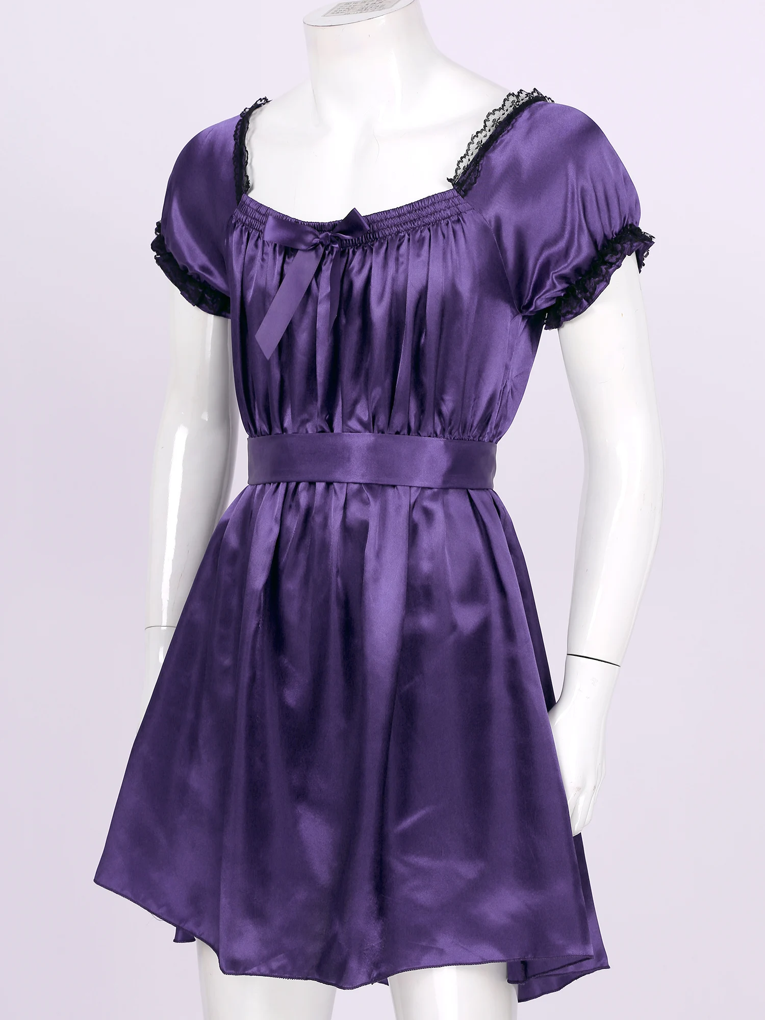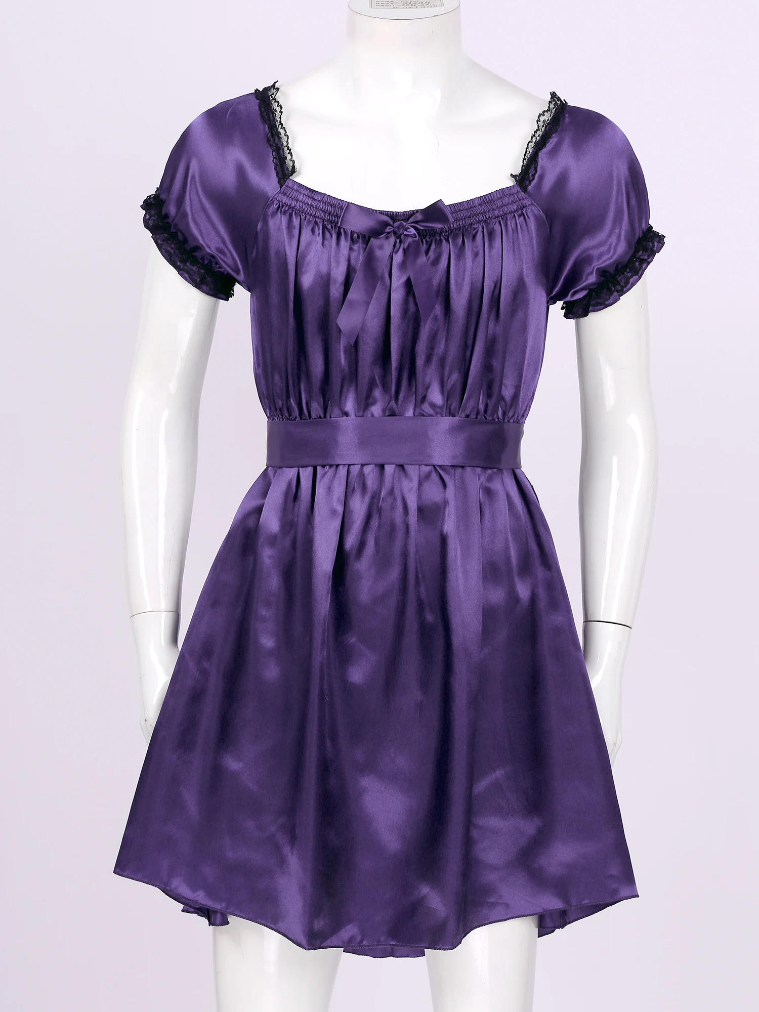 Особенности:Мужское блестящее атласное нижнее белье, платье, нижнее белье, застежкаКороткие рукава с рюшами и кружевом; Эластичный квадратный вырез; Бант спереди.Эластичный пояс с поясом для удобной посадки, высокий низкий дизайн, сплошной цвет.Очень мягкие и удобные в носке, идеально подходят для ночного белья или для самостоятельного удовольствия.Пожалуйста, внимательно проверьте таблицу размеров, которую мы предоставляем перед размещением заказа, ручная стирка в холодной воде, машинная стирка.
