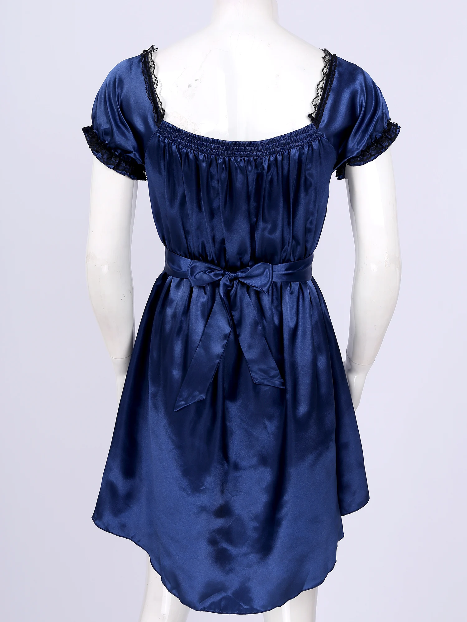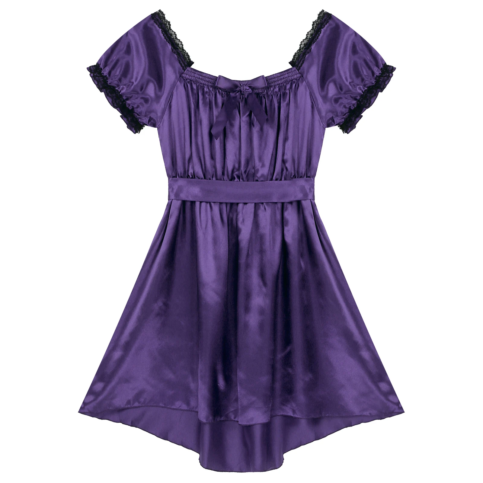 Для мужчин Сисси ночное белье, эротическое нижнее бельё квадратный вырез мягкий атласный, высокий, низкий дизайн женскую одежду женское платье с поясом