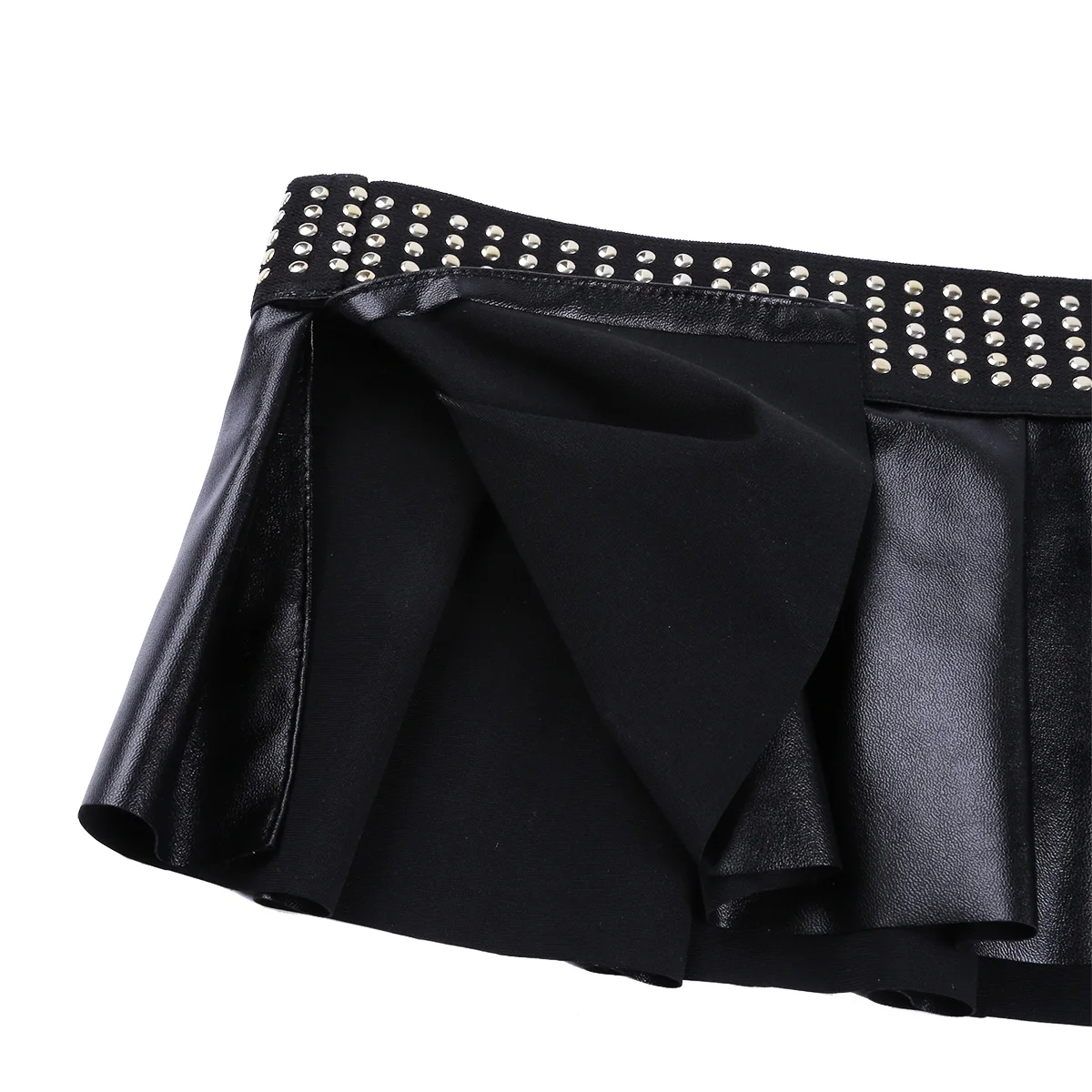 Женская плиссированная мини-юбка из искусственной кожи, с Боковым Разрезом, украшенная шипами, для танцев на Пилоне, юбка для клубной вечеринки, для вечеринок