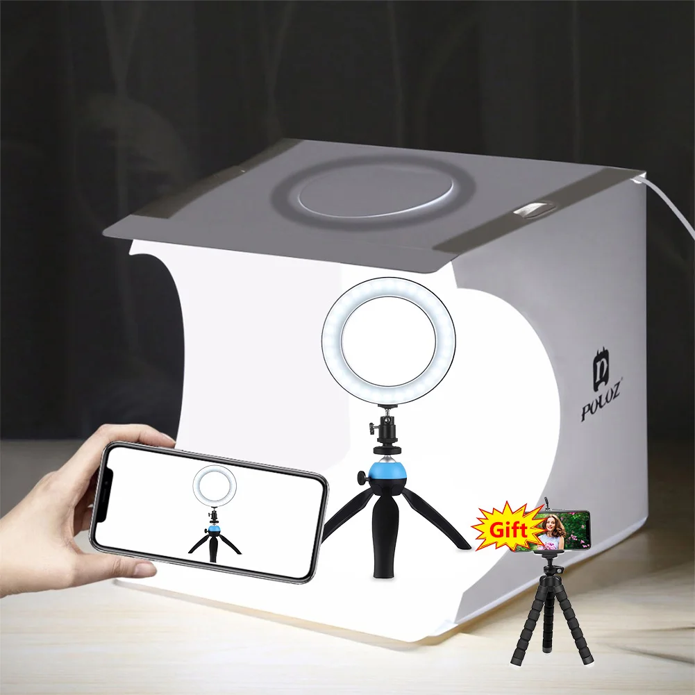 PULUZRing панели складной светильник коробка Регулируемый Яркость светильник box Mini для съемок в фотостудии фон для фотосъемки коробка светильник в форме палатки для студийной фотосъемки в наборе с 6 Цвет для фотосъемки софтбокс для DSLR камер софтбокс для смартфонов