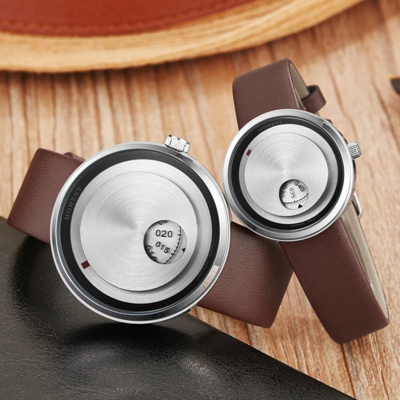 Минималистичные кварцевые часы для женщин и мужчин, повседневные часы для пар, наручные часы для влюбленных, уникальный вращающийся циферблат, мужские спортивные с кожаным ремешком