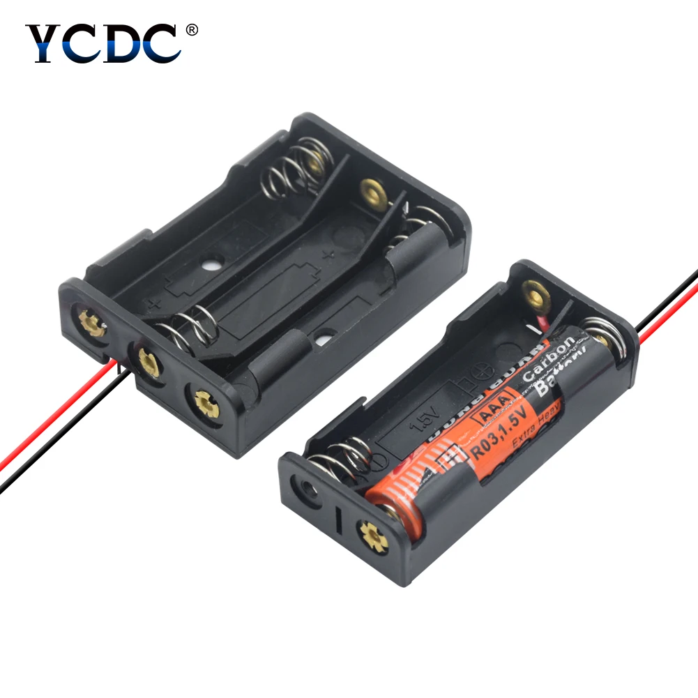 Особенности 100% Новинка! Новая батарея общего пользования чехол для хранения Коробка для простых решений питания. Он может держать Стандартные батарейки размера AAA, либо для одноразовых или перезаряжаемых батарей, черный и красный дизайн двух проводов отлично подходит для легкой пайки и подключения. Может вмещать 1/2/3/4 шт. AAA аккумуляторов от отдельные ячейки. Изготовлен из ударопрочного АБС-материала, профессиональный, легкий и удобный для переноски. "Сделай сам" для наращивания, вы можете использовать этот аккумулятор чехол с ваш собственный батареи для того чтобы сформировать новый источника питания системы. Отличные элементы для хранения ваших перезаряжаемых батарей, организованные и защищенные. Идеально подходит дляПлаты Arduino, микроконтроллеры, мини-светодиодный проект, игрушки DIY, заменяет сломанные держатели батарей для многих электронных устройств и т. д. Технические характеристики Материал: АБС-пластик Тип: для AAA (HR03, LR03, 24A, 24AC, 4003, 824, AM4, E92) Вход Напряжение: 1,5 В щелочные или 1,2 никель-металл-гидридный аккумулятор с напряжением или Ni-Cd акумулярорных клетки Цвет: черный Дизайн ДляAAA/LR3/HR3Аккумулятор, с выходомКабели,Черный для -Красный для + Слот (ы) 1 2 3 4 4, двухслойные Длина кабеля 13,5 см/5,31" 13,5 см/5,31" 13,5 см/5,31" 13,5 см/5,31" 13,5 см/5,31" Размеры 4.9x1.2x1.1см 1.9x0.5X0.4" 5.1x2.3x1.1cm 2x0,9x0,4" 5.2x3.5x1.2см 2x1,4x0,5" 5.2x4.9x1.2cm 2x1,9x0,5" 5.3x2.4x2.3cm 2,1x0,94x0,91 "(Д x Ш x В) Вес нетто 3g/0,1 oz 5g/0,17 унций 7g/0,24 oz 9g/0,31 oz 7g/0,245 oz Номинальная выходная мощность 1,2V/1,5 V 2,4V/3V 3,6V/4,5 V 4,8V/6V 9,6V/12V