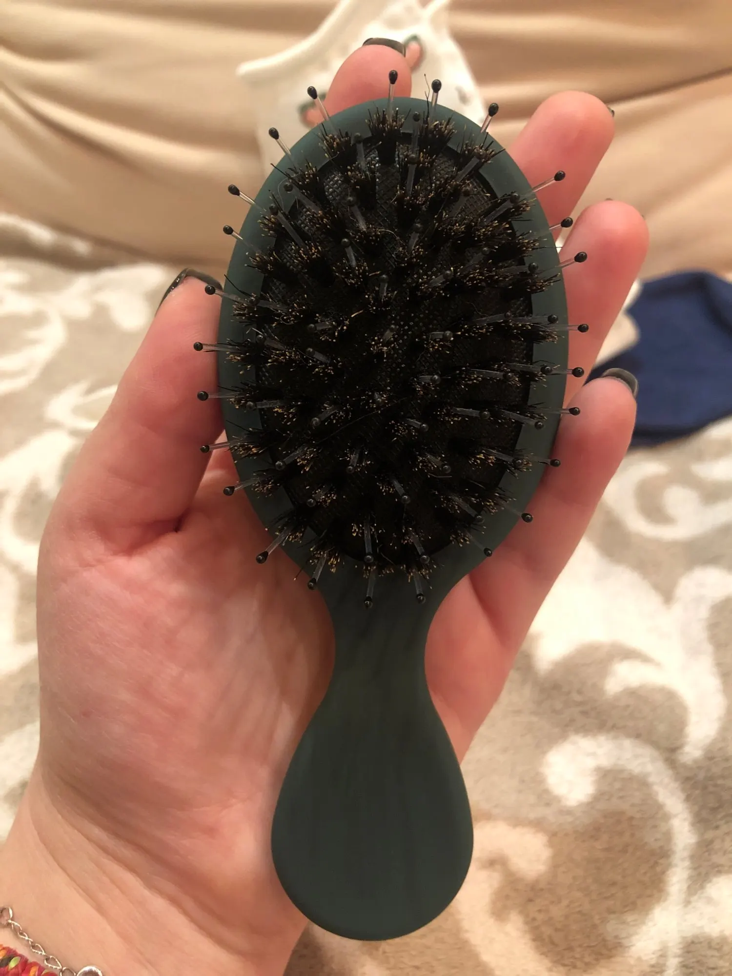 Очень удобная расческа! Маленькая и хорошо распутывает волосы. Заказывала две подряд, сейчас хочу заказать ещё, так как подруги постоянно спрашивают, где я такую купила )