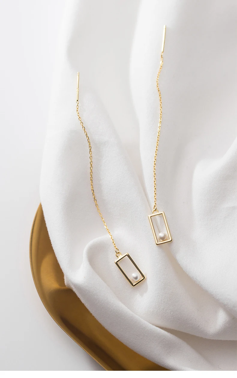 Женские длинные серьги из серебра 925 пробы, полые, квадратные, жиз...