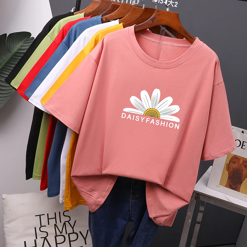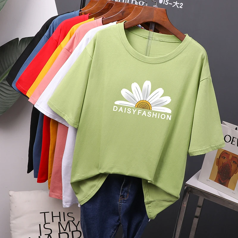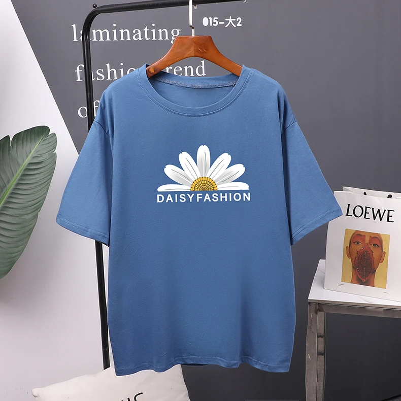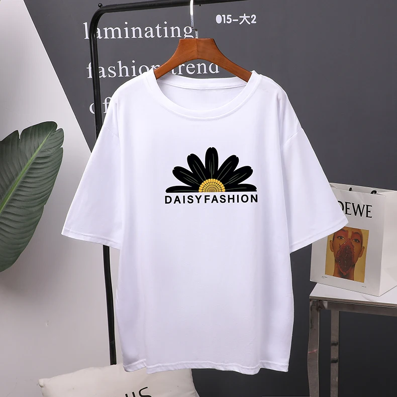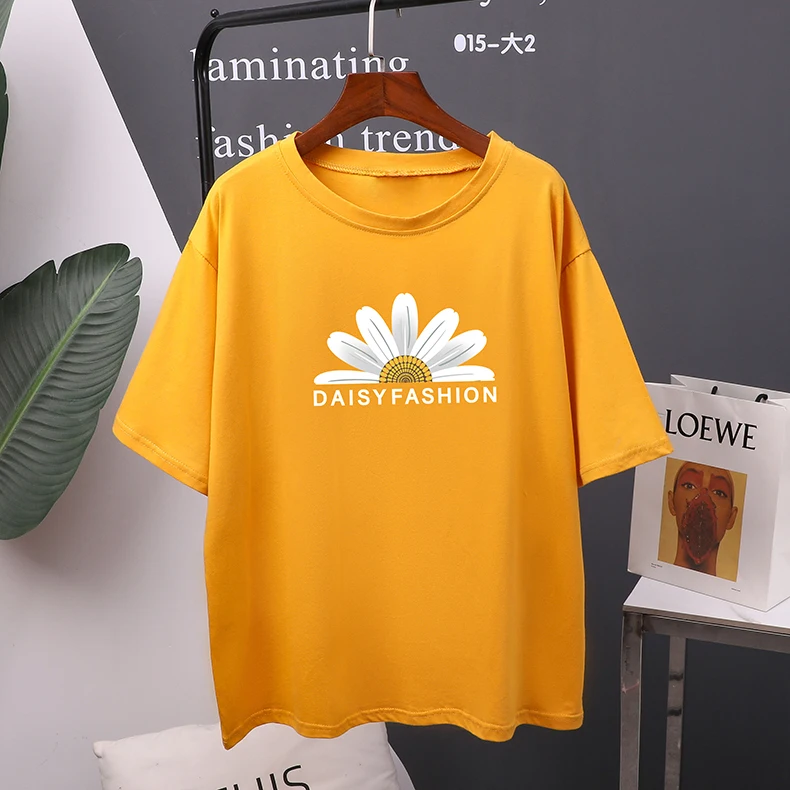Футболка Hirsionsan женская с принтом маргариток, 2020 хлопок, круглым вырезом