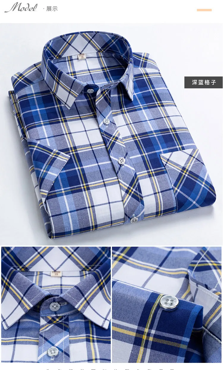 Клетчатые рубашки для мужчин, летние, с короткими рукавами, для отд...
