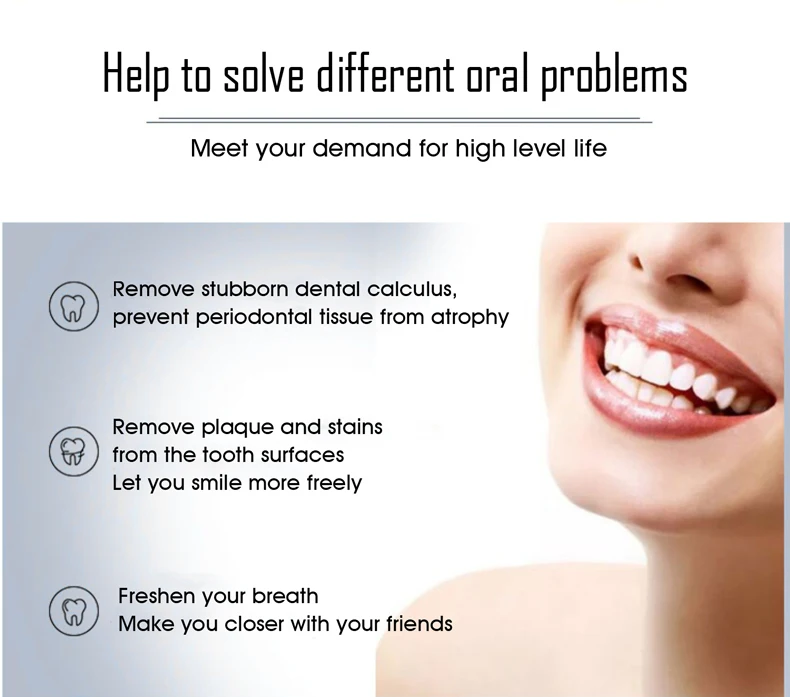 1. Острые точки: глубоко очистите зуб, удалите Зубное основание,Пятно от табака, зубной камень, глубоко чистый зазор между зубамиПлоская точка: Удалите пятна поверхности зуба (пятна чая, пятна кофе),Оживляет ваш зуб