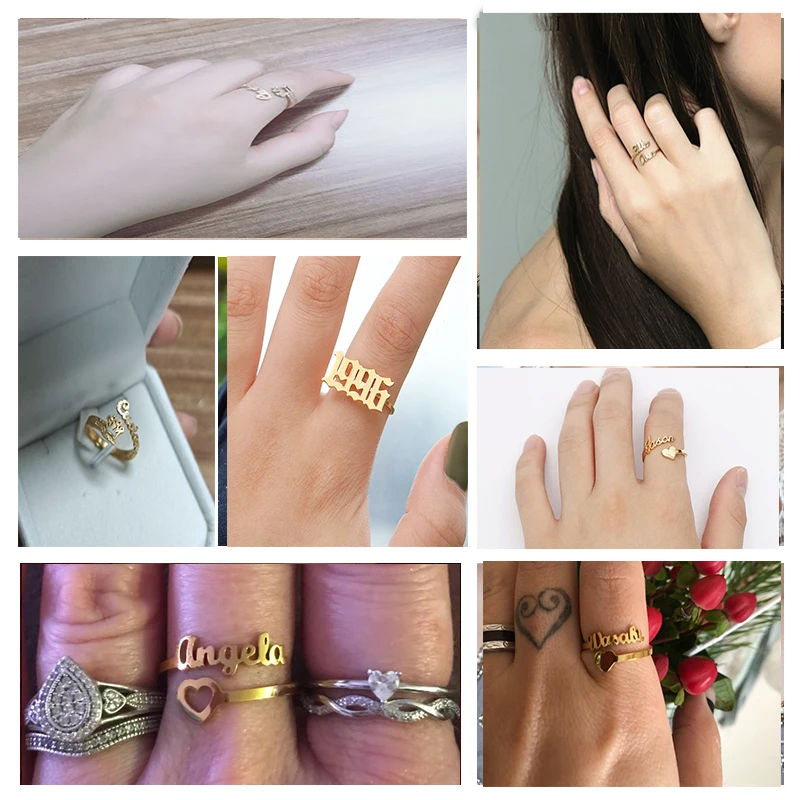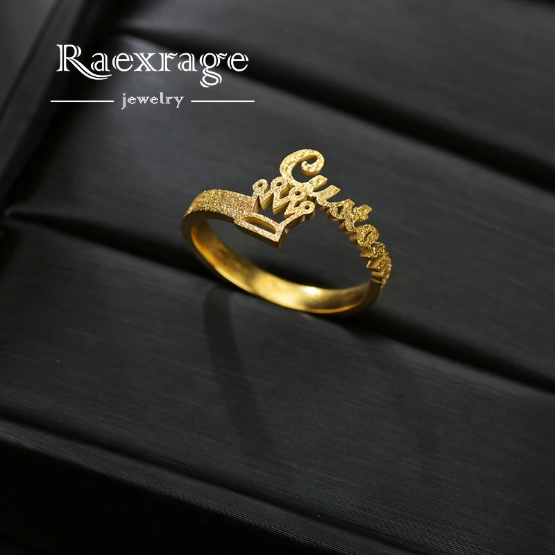 Кольцо Raexrage с именем для мужчин и женщин, матовое регулируемое в виде короны и сердца из нержавеющей стали, ручная работа с индивидуальными буквами