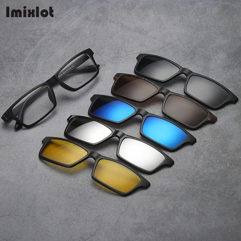 Imixlot, поляризационные солнцезащитные очки для мужчин и женщин, 5 в 1, магнитные клипсы для очков, очки для близорукости, оптические оправы для очков по рецепту