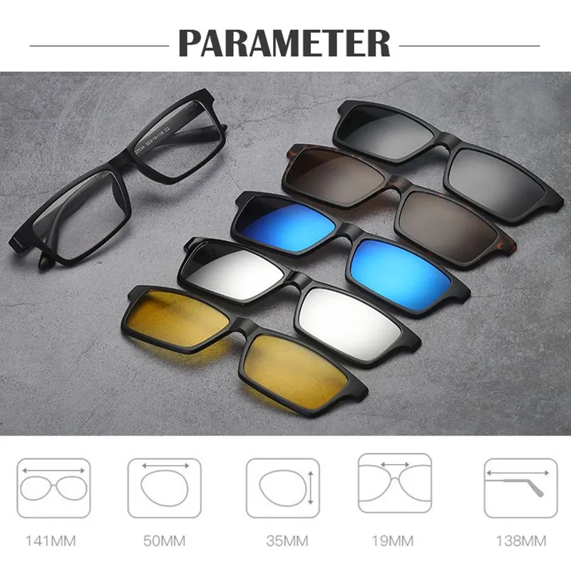 1 x Магнитные солнцезащитные очки (5 линз + 1 оправа для очков)