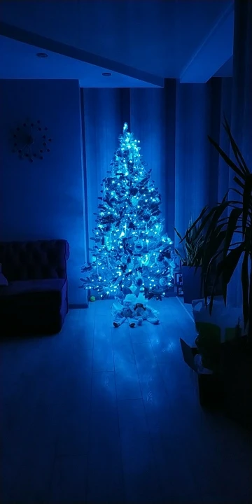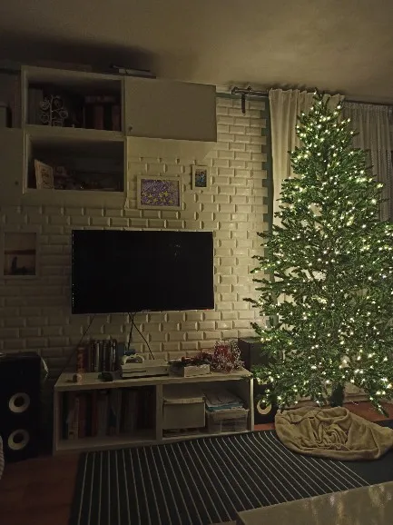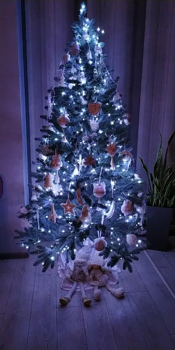 Гирлянда очень красивая, огни не мигают, вариантов режимов нет, елка на фото 180 см огоньков в самый раз. В живую огни белые, на фото немного искажён цвет. Пришло за 3 недели.