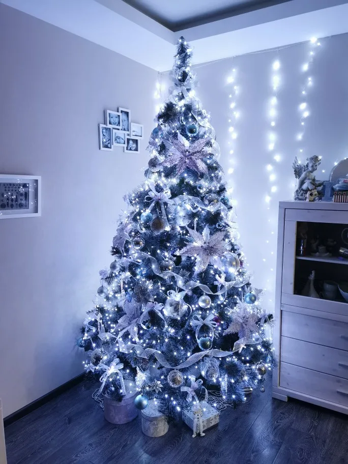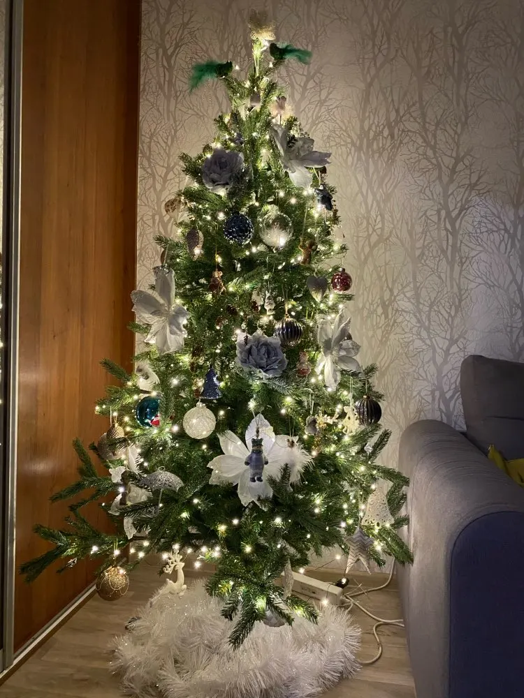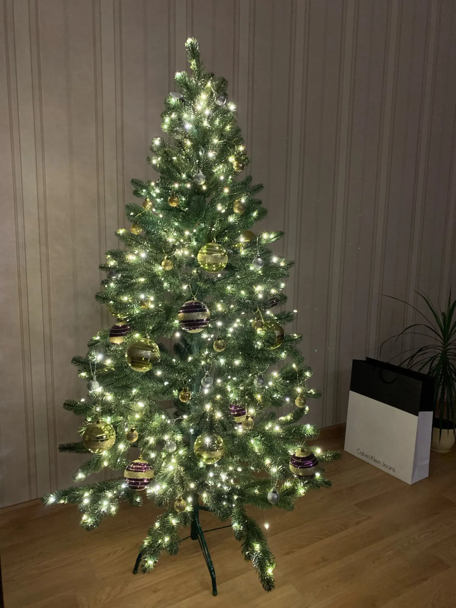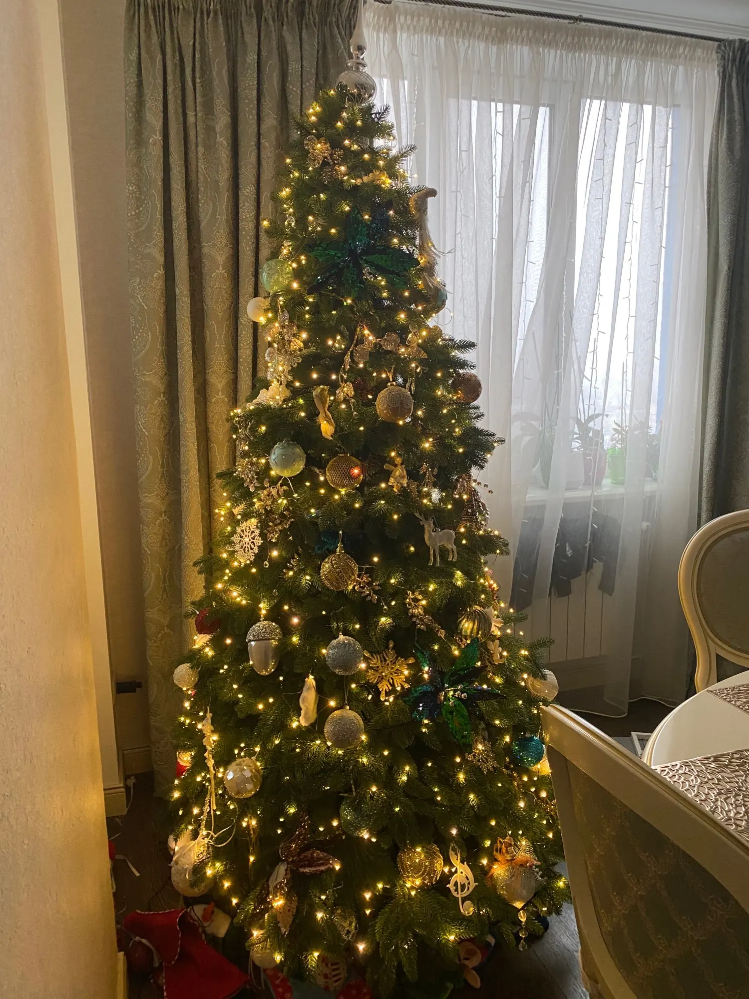 Качественно , быстро, красиво ! Но, мне не хватило 100 метров на эту елку, обматывала каждую ветку , пришлось сзади оставить пустыми ветки