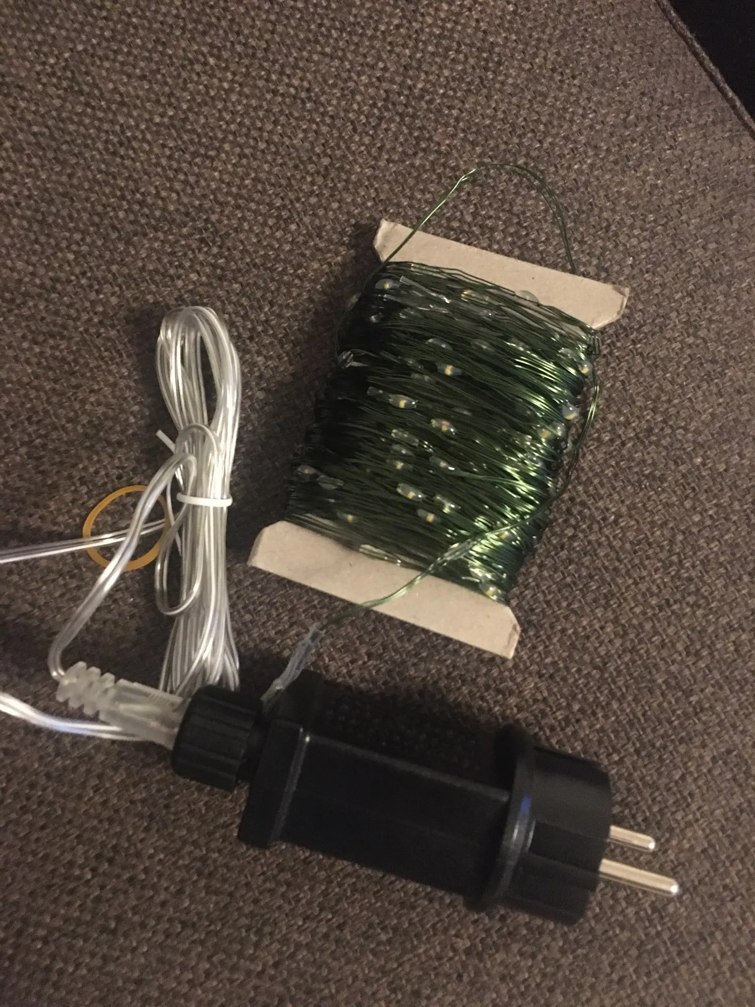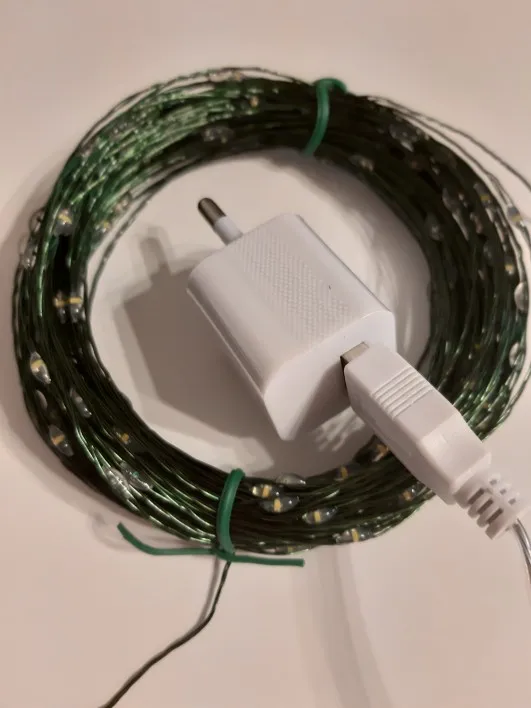 Заказала 20м на 1,5метровую елку. Опробую по длине уже на следующий новый год. Все лампочки работают. Гирлянда на жесткой проволоке, т.е. можно придать любую форму. Шнур юсб плюс вилка-адаптер под розетку.