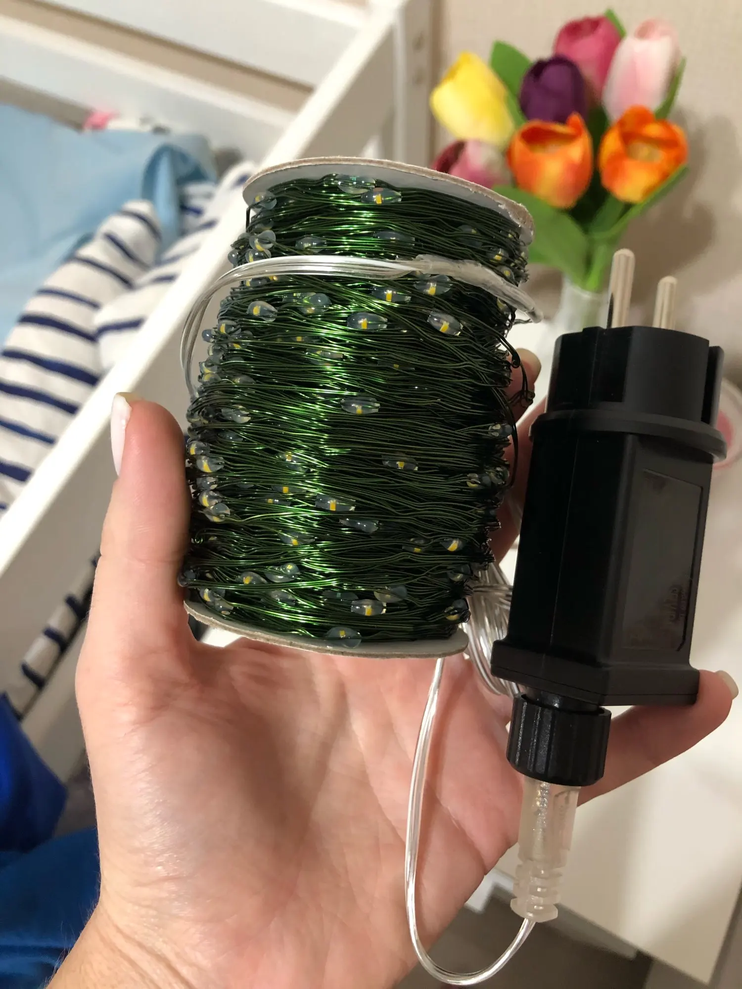Заказала 30метровую гирлянду. Качество отличное, проводка очень тонкая, на зелёной елке совсем не виден провод, а только красивые маленькие, уютные огоньки
