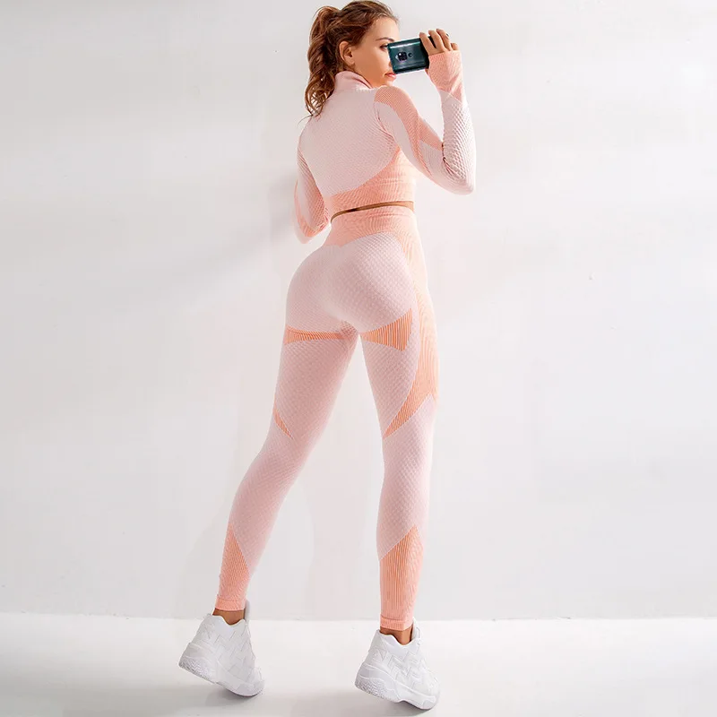 3 шт., бесшовный комплект для йоги, женская спортивная одежда, Женские Штаны Для Йоги + спортивный бюстгальтер + укороченный топ на молнии, одежда для тренировок с длинными рукавами