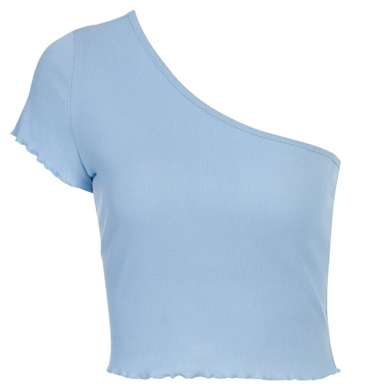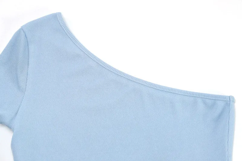 Женские базовые Топы, летняя облегающая Однотонная футболка на одно плечо с рюшами, женская футболка с коротким рукавом и открытыми плечами, сексуальная клубная Повседневная футболка, Топ