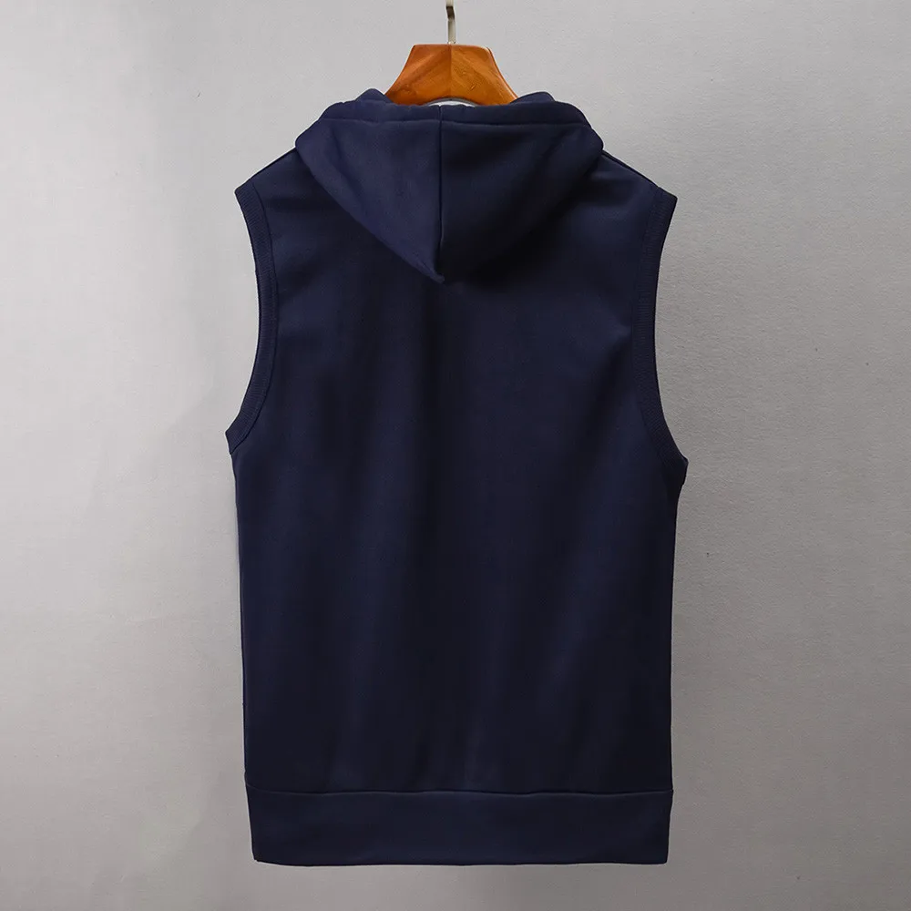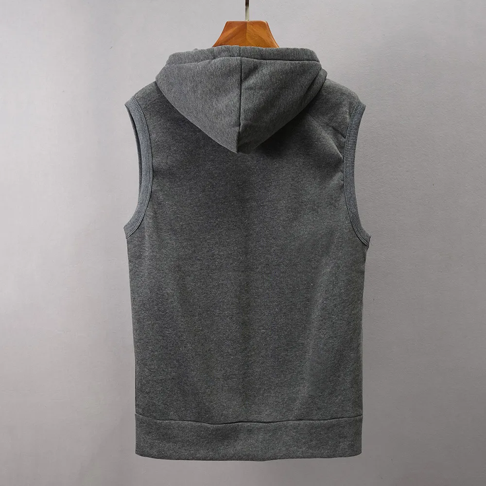 Модная мужская куртка, жилет без рукавов, однотонный жилет с капюшо...